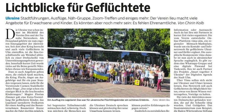 У березні 2022 року почався напад на Україну в порушення міжнародного права – відтоді ми співпрацюємо з багатьма прихильниками допомоги біженцям в Ульмі та околицях. Все почалося з регулярних зустрічей в “Тевтонії Ульм”. Відтоді ми змогли надати допомогу та підтримку в численних акціях та ініціативах. Тут ви знайдете газетні статті, звіти та посилання на нашу роботу (яка постійно розширюється), а також матеріали про роботу з біженцями з України.