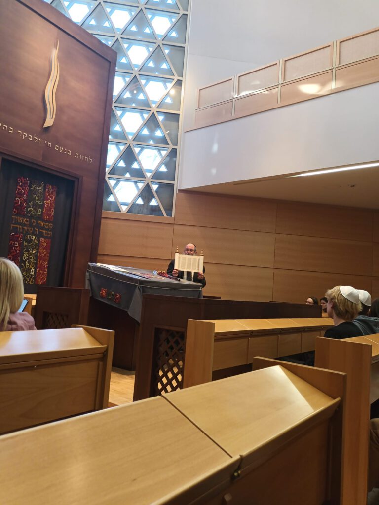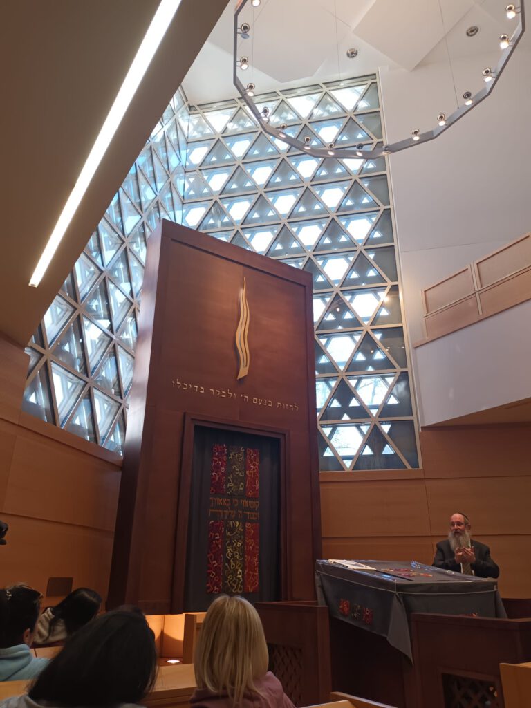 Zusammen mit dem Team von ILEU e.V. besuchte eine Gruppe Ukrainerinnen im November die Ulmer Synagoge. Rabbi Shneur Trebnick erzählte von der Geschichte der Ulmer Gemeinde und dem Bau der neuen Synagoge am Weinhof, wo während des Dritten Reichs die alte Synagoge zerstört wurde. Von großem Interesse war aber auch, wie Rabbi Trebnick vom aktuellen Gemeindeleben erzählt, welche Feste die Gemeinde feiert und welche Bedeutung die einzelnen der Synagoge hat.