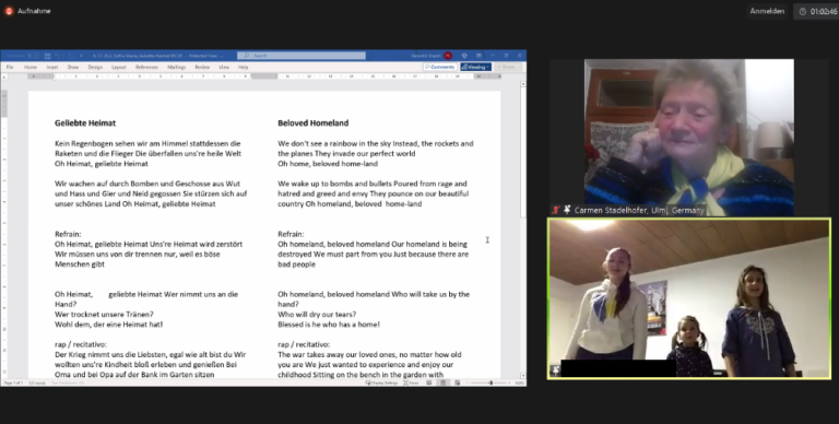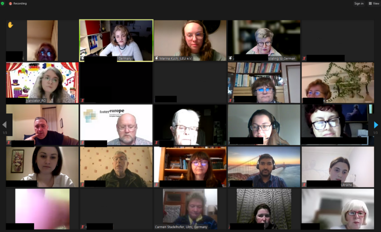 Am Sonntag veranstaltete ILEU e.V. eine internationale Solidaritätsveranstaltung der Danube Networkers International per Zoom im Rahmen der Come together Sessions. Neben Berichten aus der Ukraine und Gesprächen mit Geflüchteten gab es musikalische Beiträge aus unterschiedlichen Ländern. Es waren etwa 70 Personen aus zehn Ländern anwesend. Es gab auch zwei Vorträge über Grabenkerzen von Anastasia Smetanyuk und Tarnnetze für die Soldaten von Svitlana Boyko. Die Schützengrabenkerzen sind für die Soldaten, die in der Ukraine für ihr Land kämpfen, sehr wichtig, aber noch wichtiger ist, dass sie damit ihr Leben schützen. Diese Kerzen helfen ihnen, sich warm zu halten und vom Feind nicht erkannt zu werden.