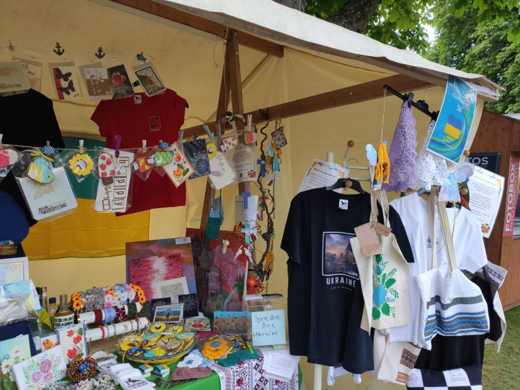 Das Internationale Donaufest Ulm/Neu-Ulm bot auch in diesem Jahr wieder die Möglichkeit, Kunsthandwerk, traditionelles Essen und vor allem Menschen aus den Donauländern kennenzulernen. Auch die engagierten Freiwilligen der Ukrainehilfe “Zusammen in Ulm” haben in wochenlanger Vorbereitung mit Liebe und Sorgfalt Kunsthandwerk, Handarbeiten und mehr hergestellt, die gegen eine Spende verkauft wurden. Der Erlös geht an ein Kinderheim in der Ukraine. Wir bedanken uns bei allen BesucherInnen und vor allem den vielen Engagierten der Ukrainehilfe! Ihr wart einfach großartig, vielen Dank für euren unermüdlichen Einsatz!